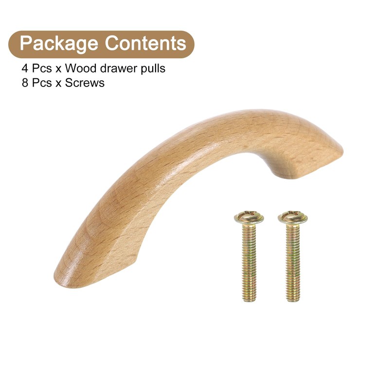 sourcing map 4Pcs Wood Drawer Pulls Handles, 64 mm/2.5" Hole Spacing Bridge Shaped Beech Wood Cabinets Drawer Knobs Pull Handles for Kitchen Cabinets Dresser Furniture