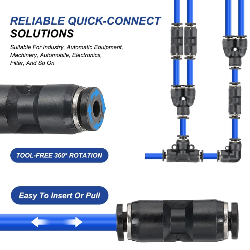 - Tool-Free 360° Rotation - Easily adjust pipeline direction after installation with a simple push and pull operation. The elliptical ring design enables smooth, easy to insert or pull, tool-free hose connections