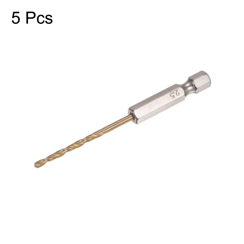 sourcing map 5 Pieces 1/4 Inch Hex Shank Bore Bits 2.5 mm Titanium Bore Bits Set M35 High Speed Steel Rotary Drill Bit 76 mm Long Full Grounding for Wood Stainless Steel Metal Plastic