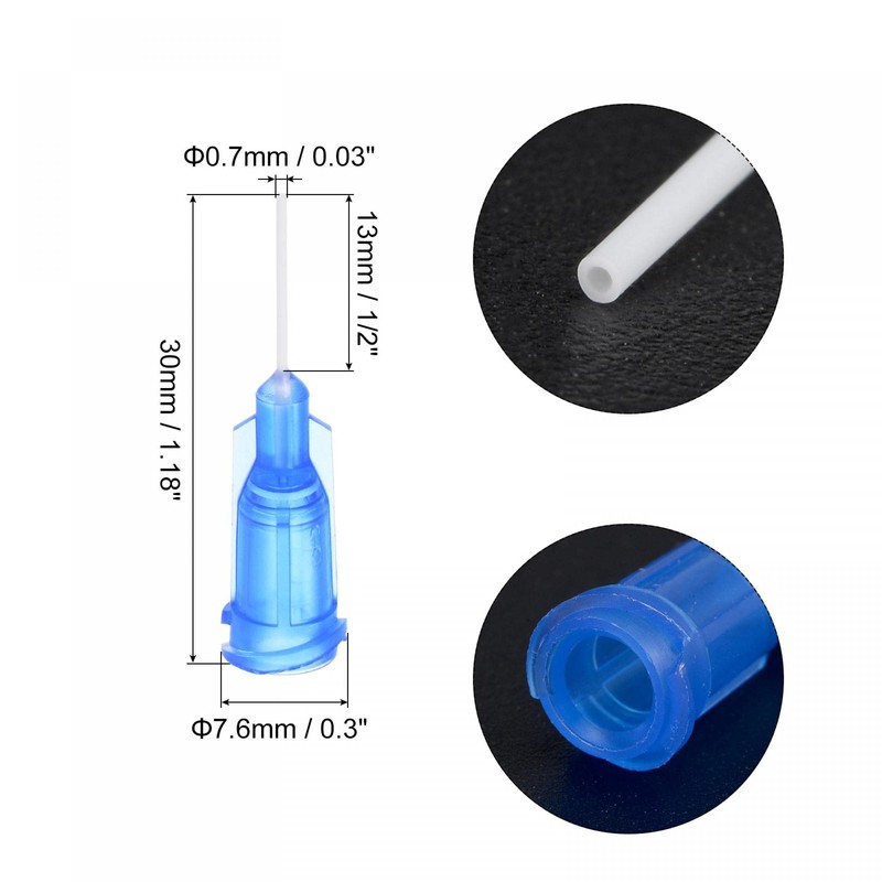 - Gauges: 22G; Length of Needle: 13mm / 1/2-inch; Needle Outside Diameter: 0.7mm / 0.03-inch; Overall Length: 30mm / 1.18-inch; Overall Diameter: 7.6mm / 0.3-inch;50 x Dispenser Needles