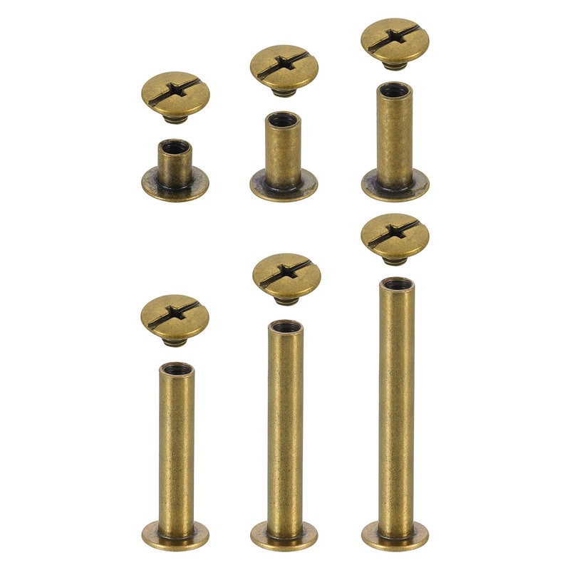 sourcing map 50 Sets Chicago Screw Rivets Metal Phillips Head Binding Screws Post Nail Rivet Stud Screw for DIY Leather Belt Bag Craft Bookbinding, 5 Sizes, Bronze