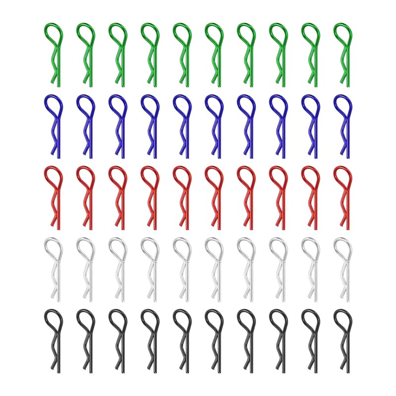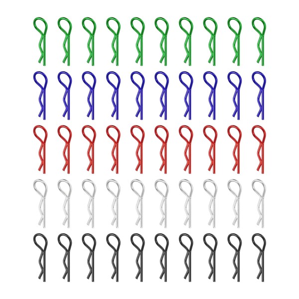 sourcing map 50pcs 30-Degree Angle RC Body Clips Bent Springy R Pins 20x1.0x6mm for All 1/8 1/10 1/12 Scale Model RC Car Crawler Replacement(Multicolor)