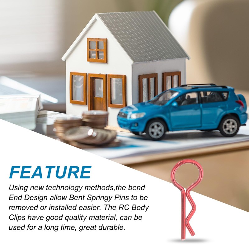 - Using new technology methods,the bend End Design allow Bent Springy Pins to be removed or installed easier. The RC Body Clips have good quality material, can be used for a long time, great durable.