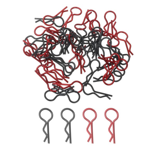 - The package contains: 50-Pack 30-Degree RC Body Clips; Rod Diameter: 0.06inches/1.4 mm; Total Length:0.98inches/25mm; Ring Diameter:0.39inches/10mm; Material: Metal; Color: Black/Red