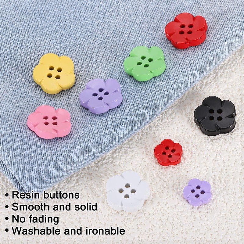 - Feature - The cute buttons are in the shape of flowers with four buttonholes, which can be easily and firmly sewn on clothes. The fashionable and cute styles and bright colors can add personality to your clothes or DIY handmade works.