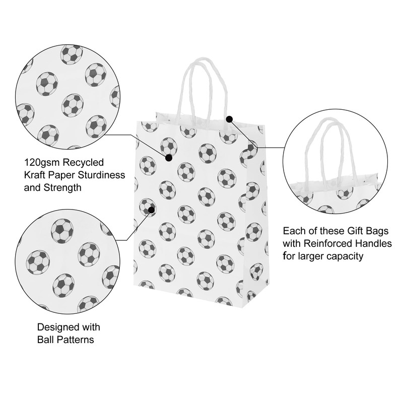 - Product Detail - You will get 50 pcs Kraft Gift Bags, Measuring 8 x 21 x 15cm/3.1 x 8.3 x 5.9inch, these kraft paper bag handles suit Kid's Sports Theme party, a Birthday Party with a football theme.
