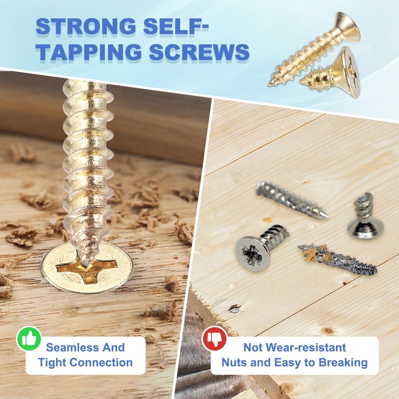 • Pan Head Cap Self Screws Total size: 25x7mm/0.98x0.28 Inch(LxD); Screws: 23x4mm; Specification: ST4 x 25mm; Color: Gold; Material: Copper plating carbon steel; Package Included: 50Pcs x self-tapping screws.