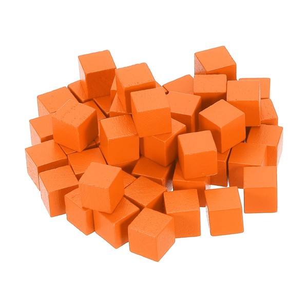 sourcing map 50Pcs Wood Blocks for Crafts, 3/8 Inch Unfinished Wooden Cube Pine Wood Square Block for DIY Craft Projects, Tangerine