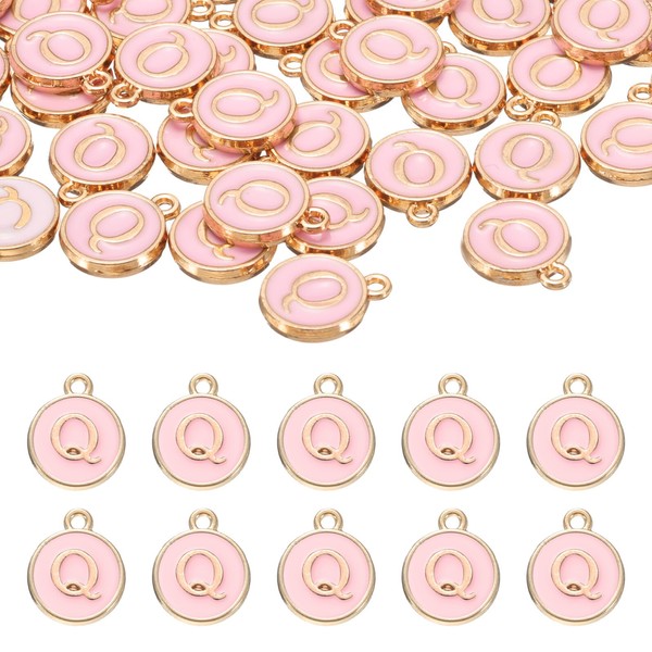 sourcing map 52pcs Letter Charm, Enamel Letter Pendants, Alphabet Q Pendants Double Sided Beads Charm for DIY Bracelet Necklace Pendants Earring Jewelry, Pink