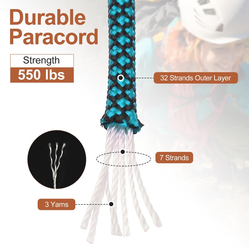 • Reliable Paracord: The utility survival 550 paracord rope is made of 7 high-strength strands of core weave, which is durable and wear-resistant. Resistant to Environmental Factors and Harsh Conditions