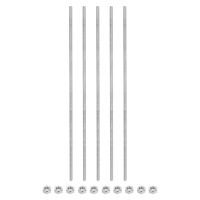 sourcing map 5Pack M4 x 150mm Fully Threaded Rod with 10 Pack Hex Nuts, 1.25mm Thread Pitch 304 Stainless Steel Right Hand Threaded Rods Bar Studs