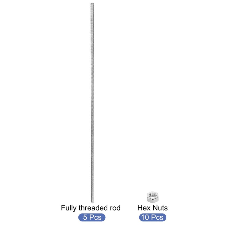 In the package of: 5Pack x fully threaded rod;10 Pack Hex Nuts