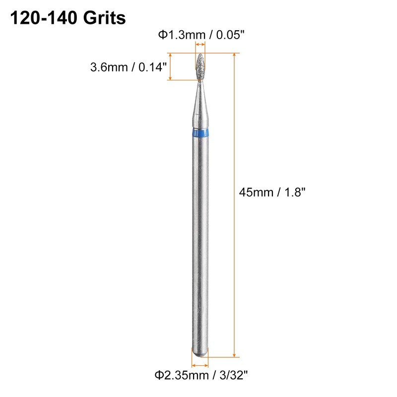 sourcing map 5pcs 120-140 Grits Diamond Grinding Bit 1.3mm Oval Head 2.35mm Shank 3.6mm Length Stone Sanding Drill Bits Rotary Tool for Ceramic Glass Nails Grinding Polishing