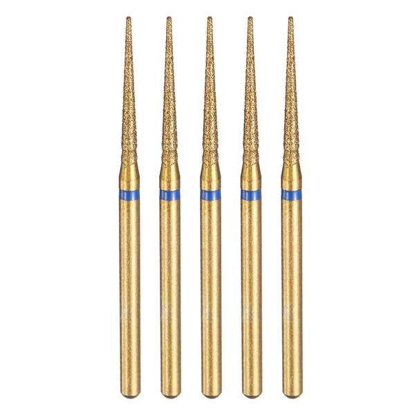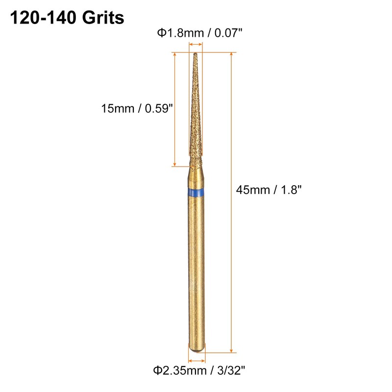 sourcing map 5pcs 120-140 Grits Diamond Grinding Bit 1.8mm Tapered Head 2.35mm Shank 15mm Length Titanium Plated Stone Sanding Drill Bits Rotary Tool for Nails Grinding Polishing