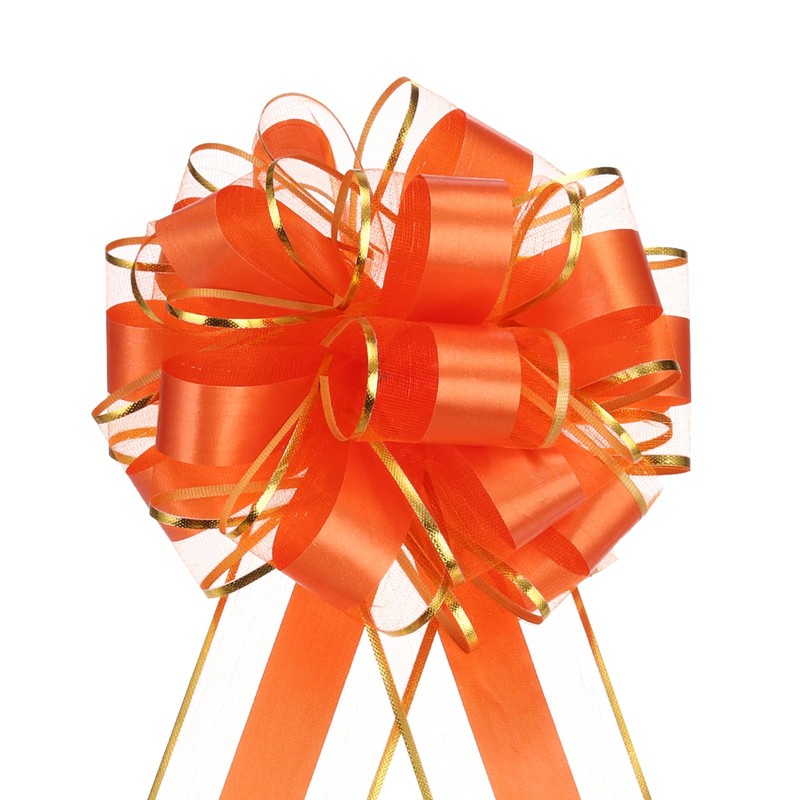 - Bright colored organza pull bows with ribbons are suitable for wedding car decoration bows, gift wrapping bows, large present decorating bows, DIY crafts handicraft decoration, gift wrapping packaging, holiday decoration, wedding gift baskets decoration, flower design, party decoration, floral bouquet ribbon, scrapbooking, and can be used to decorate Valentine's Day, Christmas, Halloween, Thanksgiving, Teacher's Day, etc.