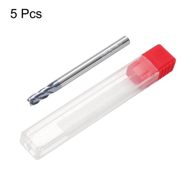 sourcing map 5pcs Carbide Square Nose End Mill Bit 4mm Cut Dia 4 Flutes TiAlN Coated Milling Cutter for Hardened Steel Metal (4mm Shank 11mm Cut Length 50mm Long 45 Degree HRC53-55)