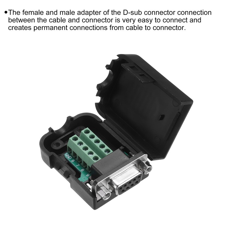 - DB9 solderless connector screw terminal block is very easy to connect and creates permanent connections from cable to connector.Plug and unplug resistance, fine solder joints, good contact, durability and long life.