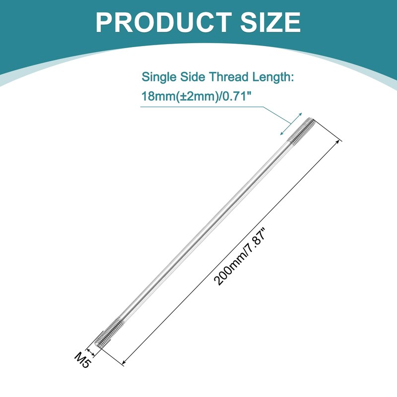 sourcing map 5pcs Double Ended Stud Screws, M5x200mm 304 Stainless Steel Dual Threaded Rod Bolts with Nuts and Flat & Lock Washers Double End Threaded Stud Screw Bolt for House Maintenance