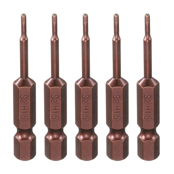 sourcing map 5pcs Hex Head Wrench Drill Bit 1.5mm(H1.5) Metric 1/4" Hex Shank 2"(50mm) Length S2 Steel Magnetic Impact Drivers Screwdriver Bit Industrial Grade Hexagon Electric Drill Bits