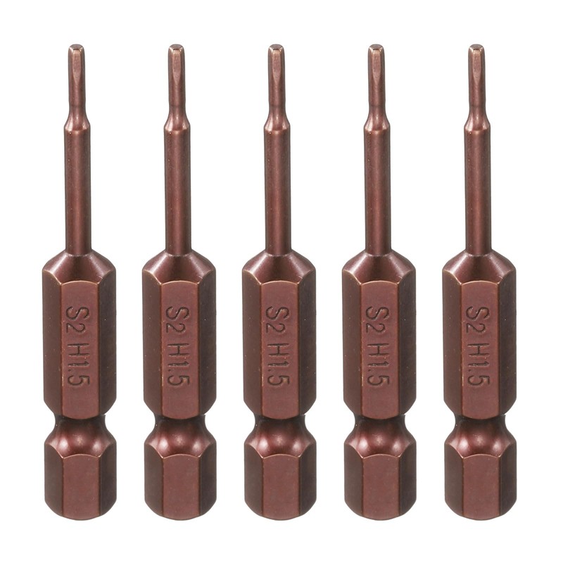 - Size - Hex wrench drill bit size: 1.5mm (H1.5), hex shank size: 1/4", total length: 50mm / 2", hardness: HRC58-62. Each hex screwdriver bit is clearly engraved with size number for easy identification.