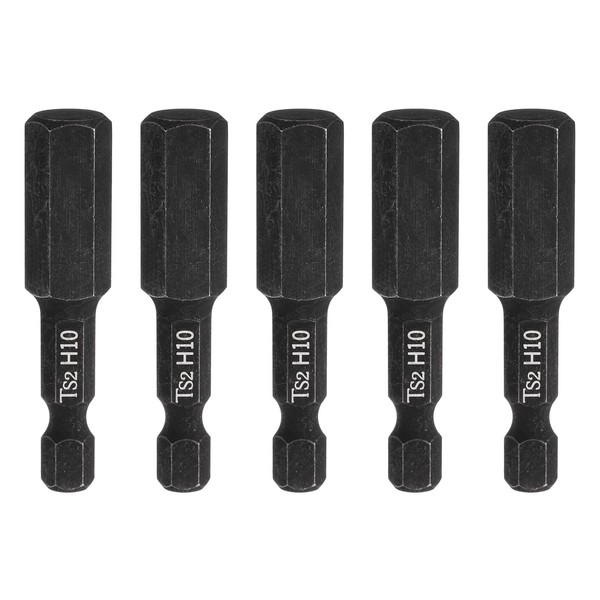 sourcing map 5pcs Hex Head Wrench Drill Bit 10mm(H10) Metric 1/4" Hex Shank 2"(50mm) Length S2 Steel Magnetic Impact Drivers Screwdriver Bit Hexagon Electric Drill Bits