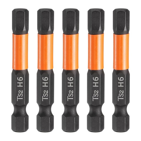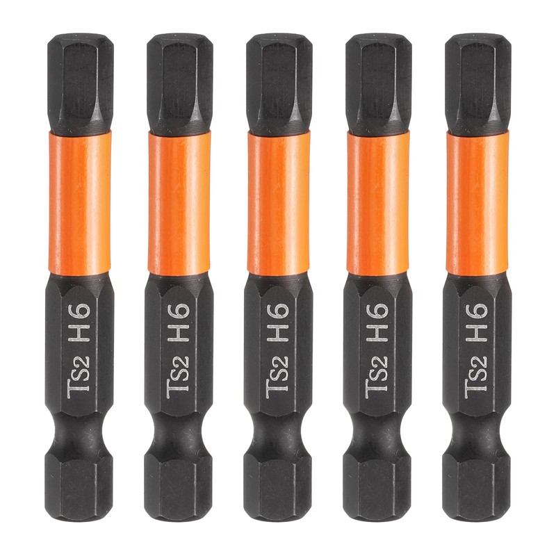 sourcing map 5pcs Hex Head Wrench Drill Bit 6mm(H6) Metric 1/4" Hex Shank 2"(50mm) Length S2 Steel Magnetic Impact Drivers Screwdriver Bit Hexagon Electric Drill Bits