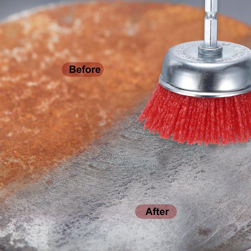 - Features - These nylon cup brushes with 1/4" shank fit most power drills and drivers. This quick-change interface allows for effortless switching between tasks and tools, enhancing your productivity and efficiency on the job site or in the workshop. Max RPM: 4,500 enabling you to utilize a drill or air tools to achieve higher rotational speeds for quicker cleaning or polishing.