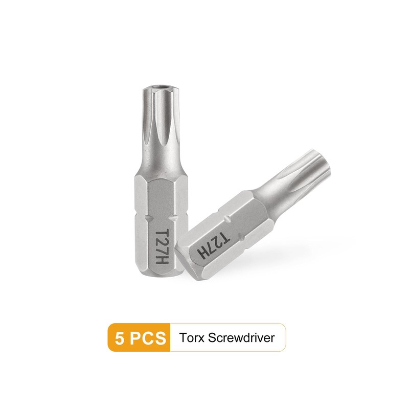 sourcing map 5pcs T27H Torx Screwdriver Bit 1/4" Hex Shank 25mm/1" Length Magnetic Star 6 Point Head Hex Bits S2 Steel Screw Driver Bit with Hole