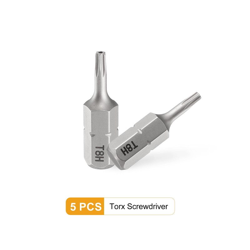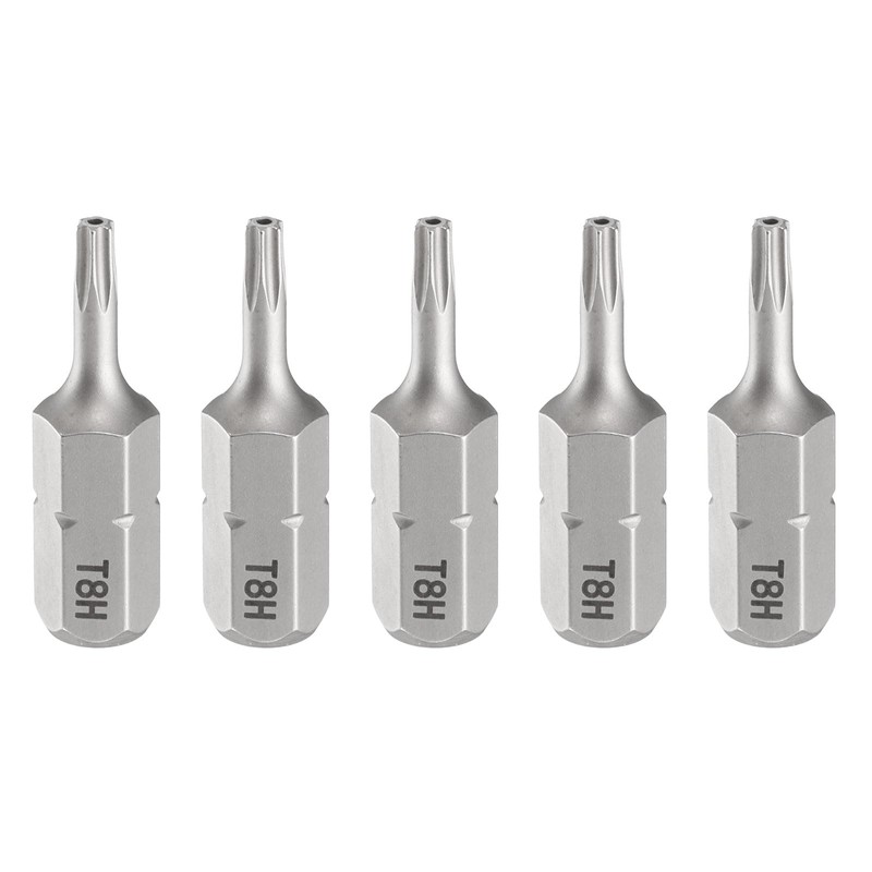 sourcing map 5pcs T8H Torx Screwdriver Bit 1/4" Hex Shank 25mm/1" Length Magnetic Star 6 Point Head S2 Steel Screw Driver Bit with Hole