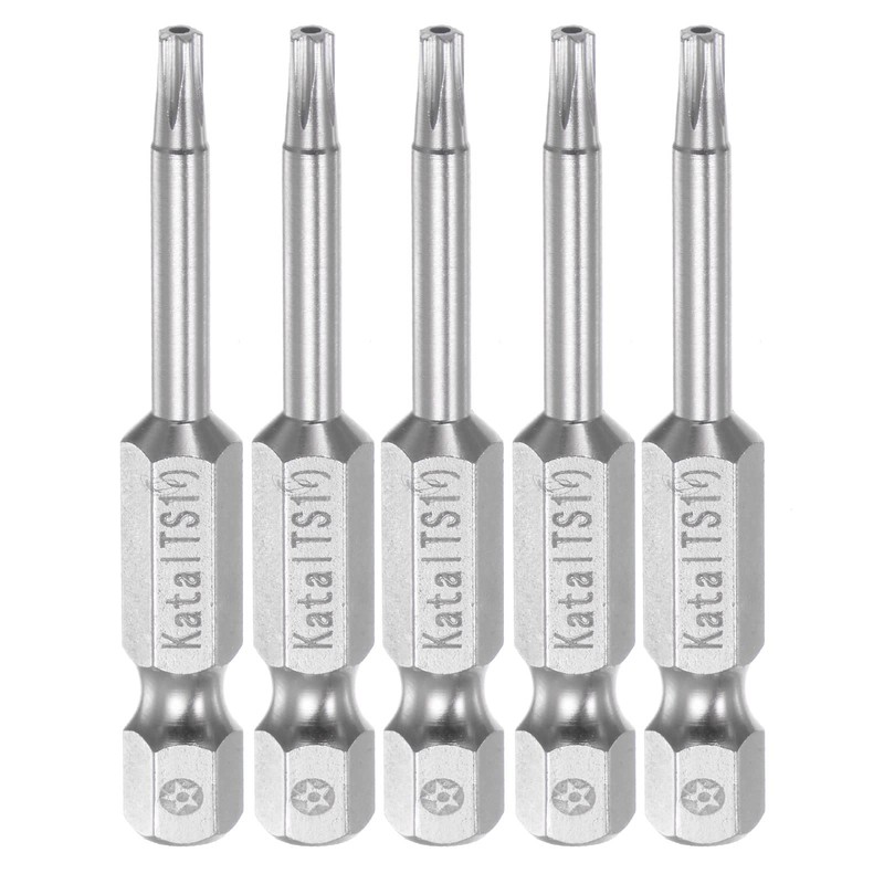sourcing map 5pcs TS10 Magnetic Security Star 5 Point Screwdriver Bit 1/4" Hex Shank 2" Length