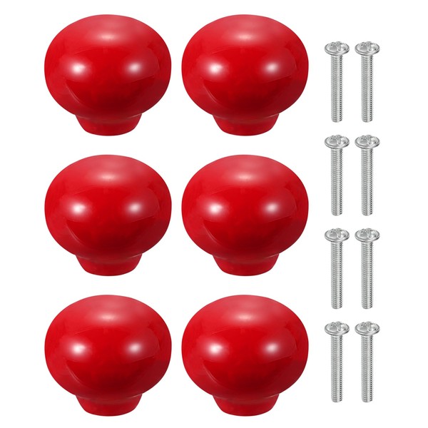 sourcing map 6 Pack Ceramic Cabinet Knobs, 1.3 Inch Round Ceramic Drawer Knob Dresser Pulls with Mounting Screws Knobs Modern Furniture Handles for Kitchen Closet Cupboard, Red