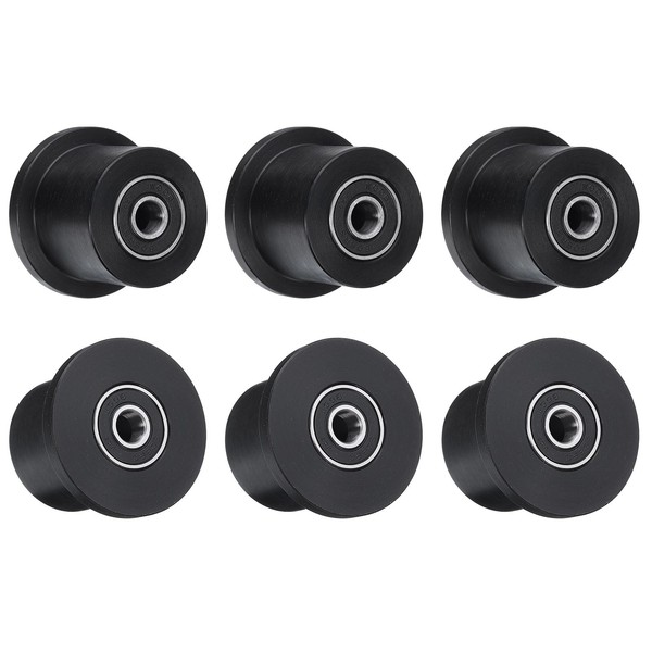 sourcing map 6 Pack Nylon Machined Wheels/Rollers Gym Replacement Wheels Fits for Total Gym Accessories Part with Bearings Through Hole of 5/16" in Diameter, Black