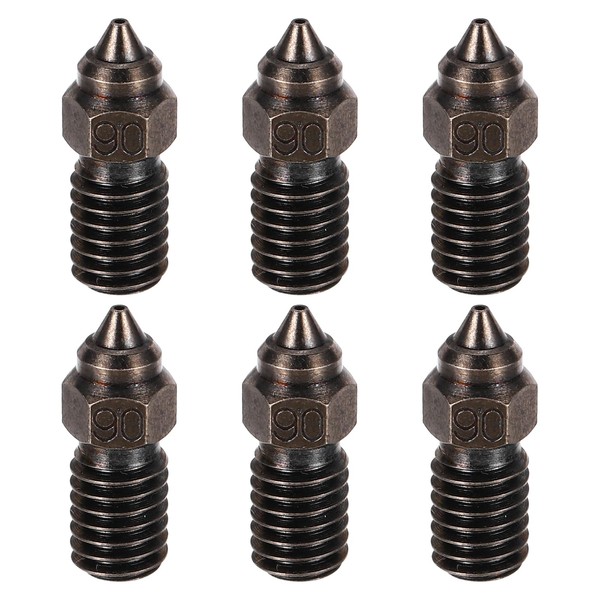 - Fit for 3D Printer;Material: Hardened Steel;Screw Thread: M6;Nozzle Diameter: 0.6mm;Overall Size(LxD): 16.8x6mm/0.66x0.24inch;Fit Filament Diameter: 1.75mm;High temperature resistance: 500°C/932°F;Color: Black;Package Content: 6 Pcs x 0.6mm nozzles;