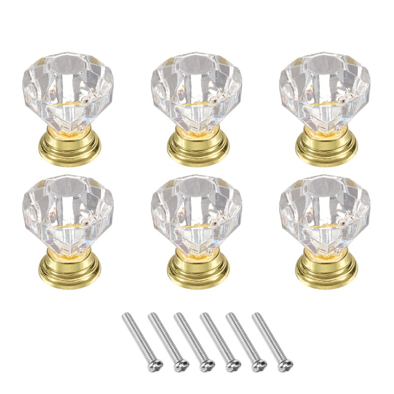 - Size and Quantity: The package includes 6 pcs crystal drawer knobs and 6 pcs screws, each knob measuring 25 mm in diameter and 30 mm in height, which are designed to fit various furniture.