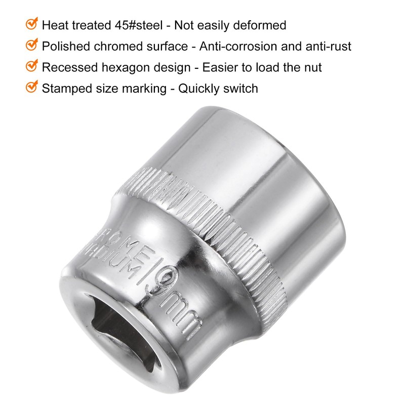 - Application - 45# steel sockets are widely used for installing and removing various structural fasteners. Suitable for automotive repair, DIY handcrafting, construction, and machinery maintenance.
