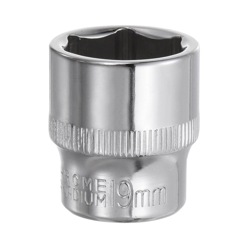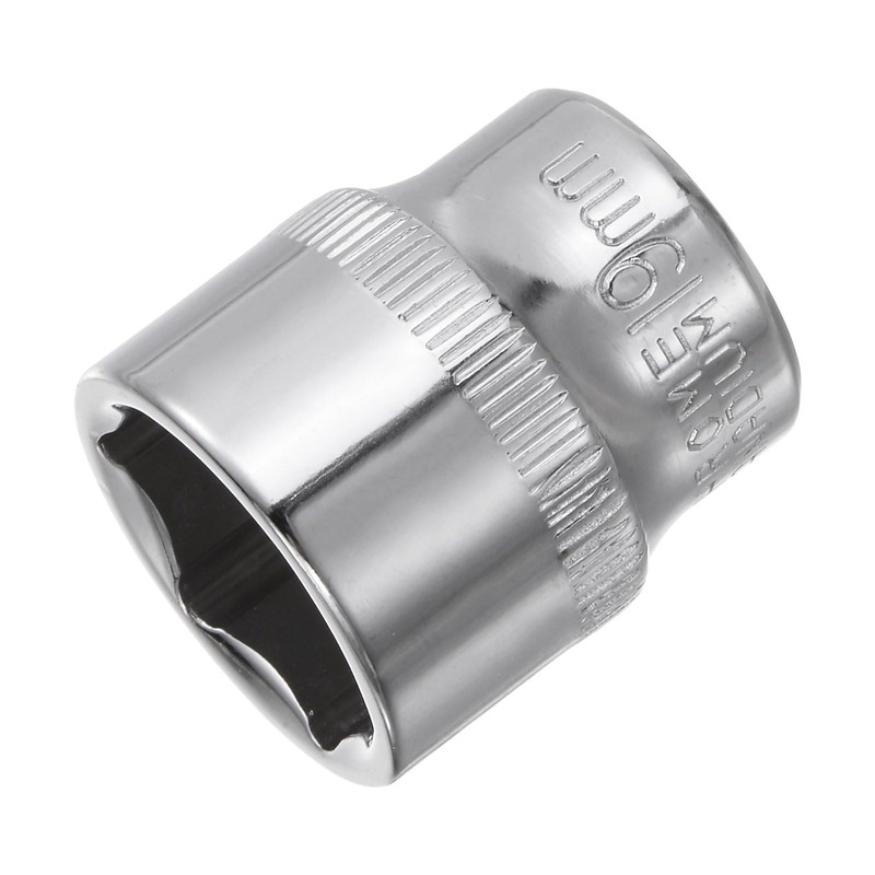 Sourcing Map 6-Point 3/8" Drive 19mm Deep Socket, 1.18" Length, 45# Steel, Metric Square Drive, Polished Chromed, Car Repair, Mechanical Maintenance, Home Use