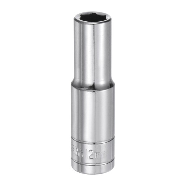 sourcing map 6-Point Socket 1/2" Drive 12mm Metric 3.1" Length 45# Steel Deep Sockets Full Polishing Chrome Sockets for Car Repair Mechanical Maintenance Home Use