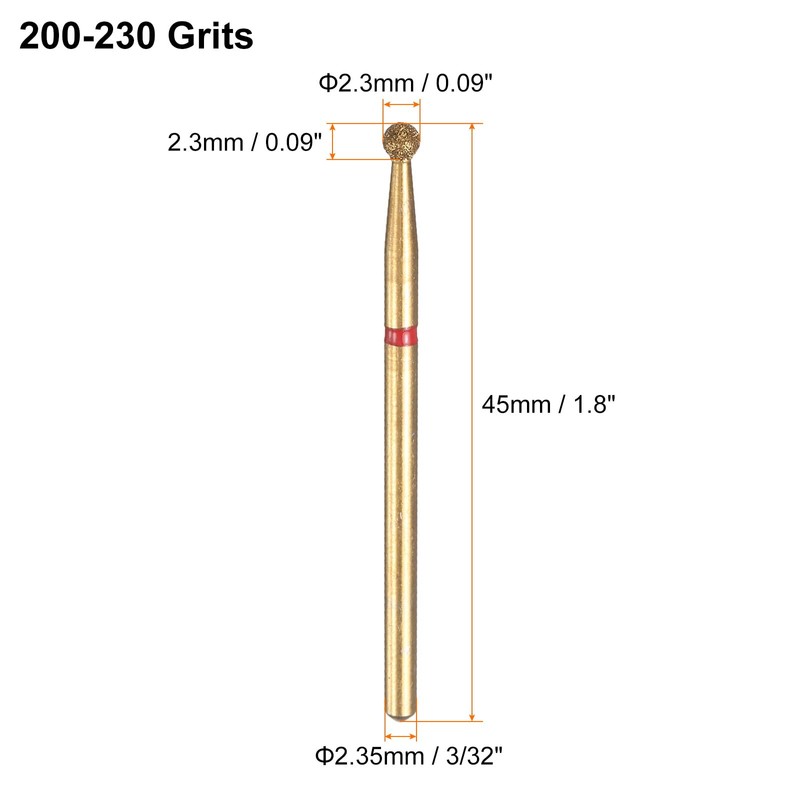 sourcing map 6pcs 200-230 Grits Diamond Grinding Bit 2.3mm Ball Head 2.35mm Shank 2.3mm Length Titanium Plated Stone Sanding Drill Bits Rotary Tool for Nails Grinding Polishing