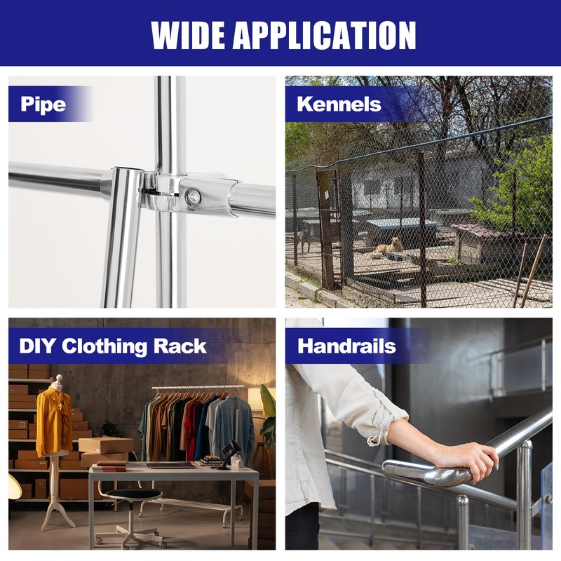 - WIDE APPLICATION: This pipe connector is used for the extension and reinforcement of pipe structures, suitable for such as hangers, handrails, fences, support rails, etc. Whether it is a home renovation or a construction site, it provides a stable solution for the fixing of pipes.