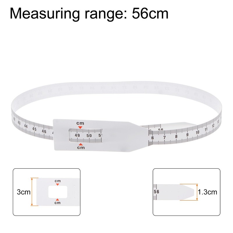 • Feature - To measure the head circumference, simply wrap the tape tightly around the head. The measurement can be read by the number indicated by the red arrow on the tape. The clear markings on the tape make it easy to read the measurements.