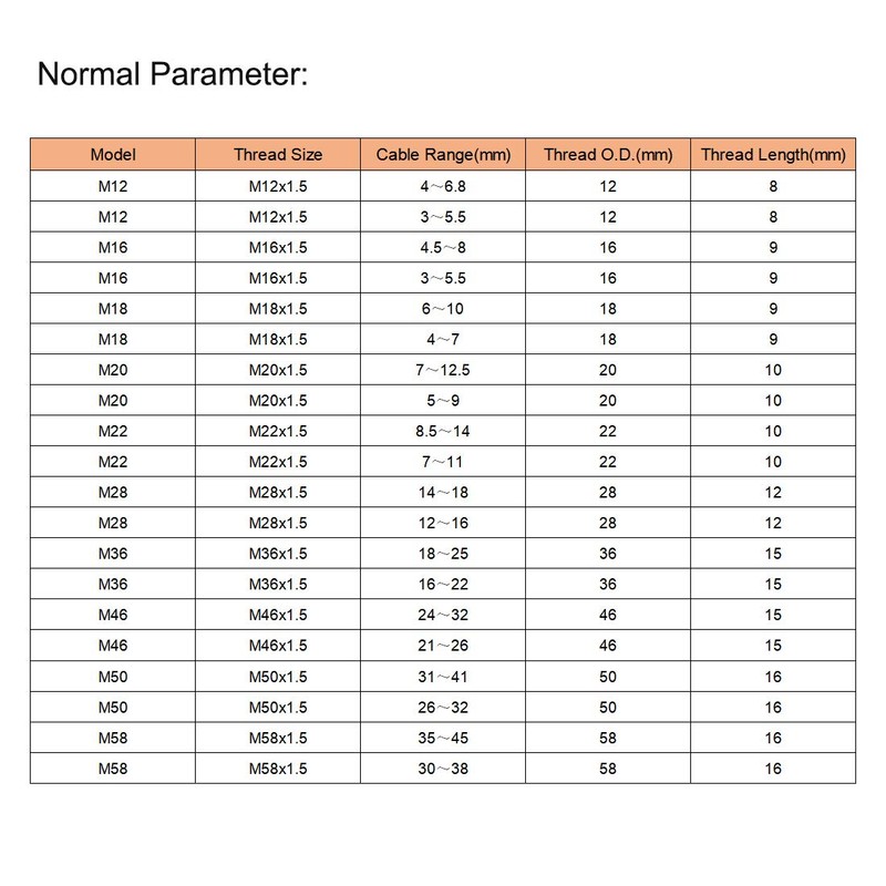 - Type: M18x1.5 ; Fit for Cable Diameter: 5mm-10mm/0.20inch-0.39inch
