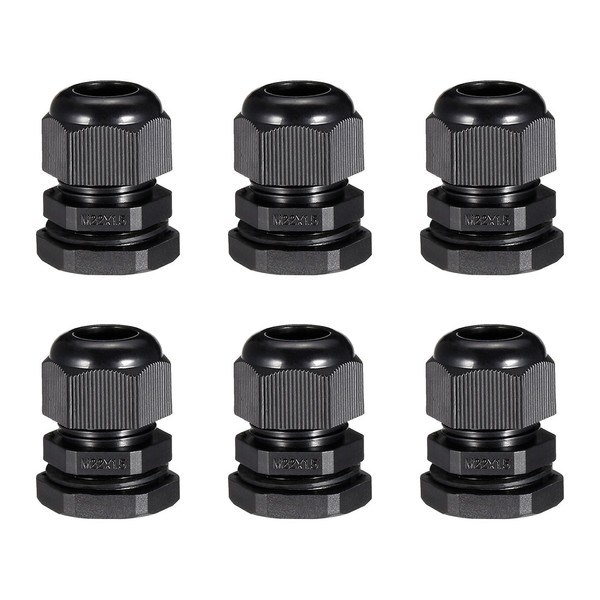 sourcing map 6Pcs M22 Cable Gland Waterproof Plastic Joint Adjustable Locknut Black for 10mm-13mm Dia Cable Wire