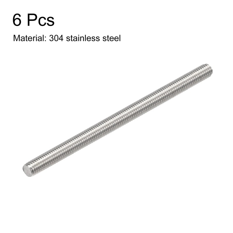 sourcing map 6Pcs M8 x 130mm Fully Threaded Rod 304 Stainless Steel Right Hand Threads