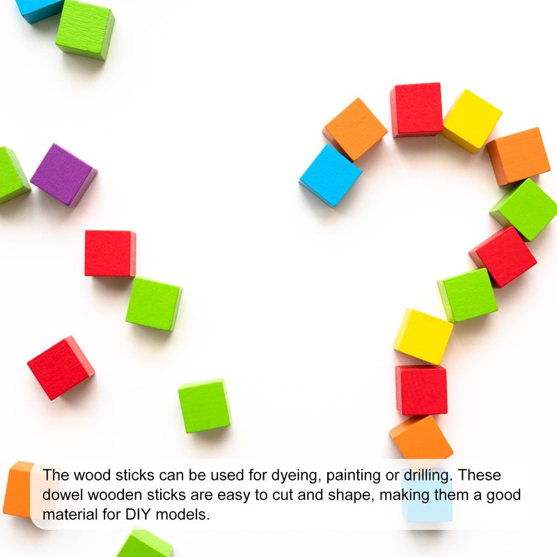 - The wood sticks can be used for dyeing, painting or drilling. These dowel wooden sticks are easy to cut and shape, making them a good material for DIY models.