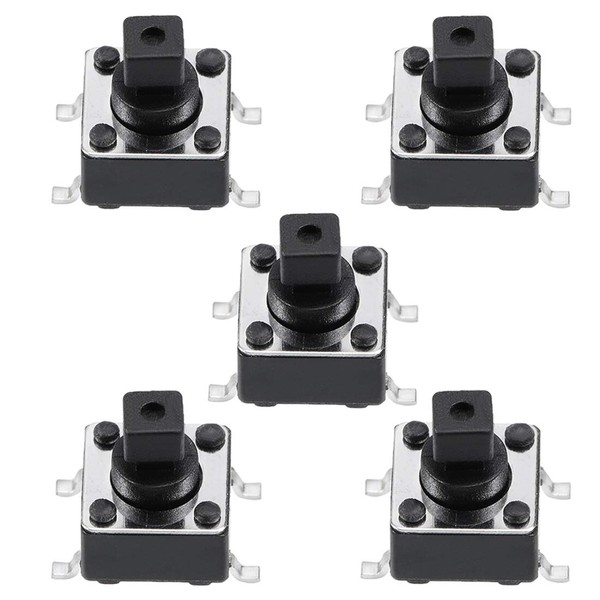 sourcing map 6x6x7.3mm Momentary Panel PCB Surface Mounted Devices SMT Mount 4 Pins Push Button SPST Tactile Tact Switch 5PCS