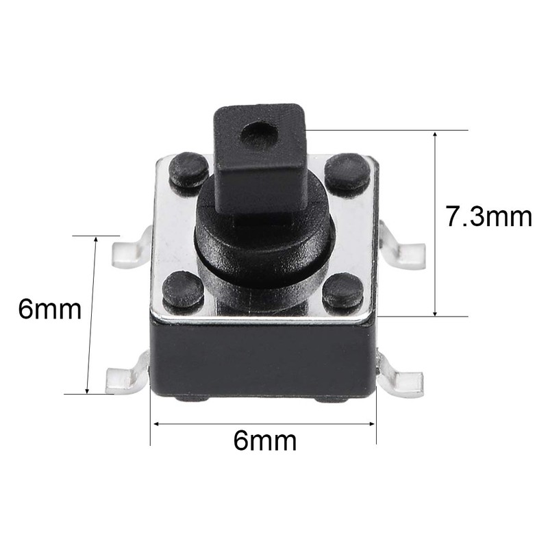 • Dimension: 6 x 6 x 7.3mm / 0.24" x 0.24" x 0.29" (L*W*H); Action Type: Momentary