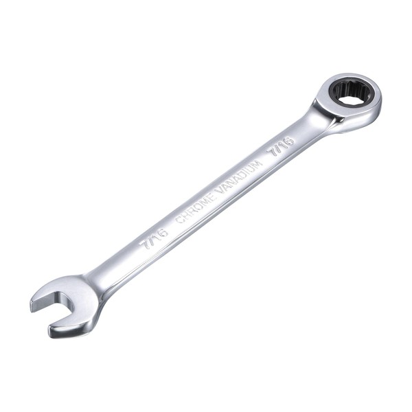 sourcing map 7/16 Inch Ratcheting Combination Wrench SAE 72 Teeth 12 Point Ratchet Box Ended Spanner Tools, Cr-V