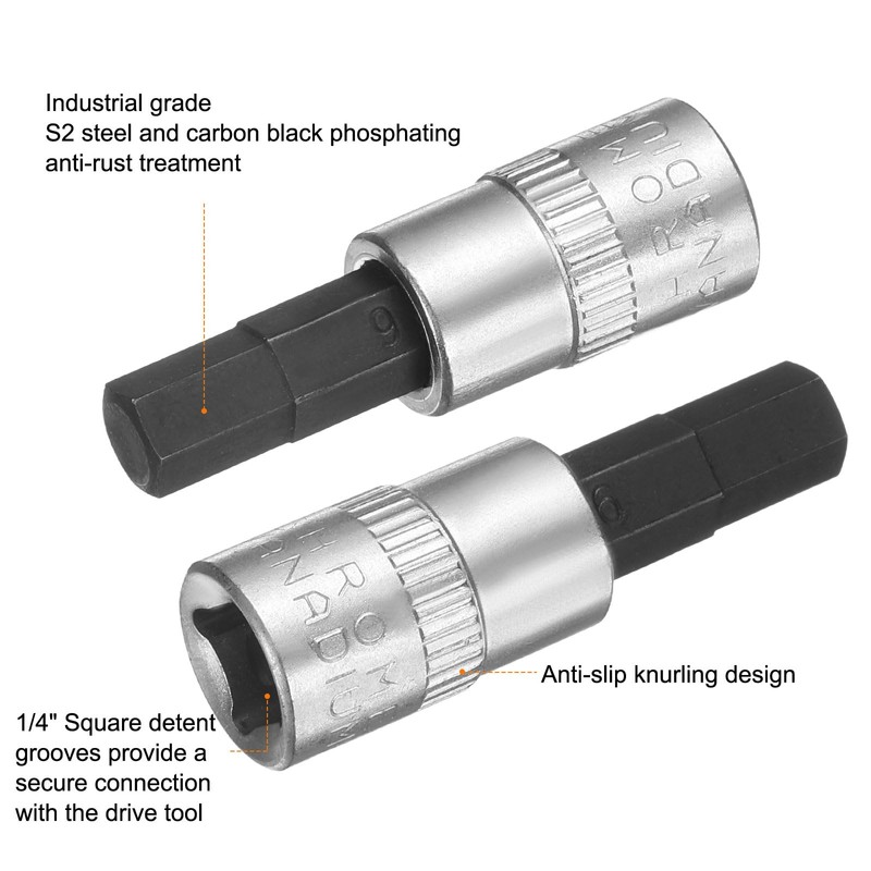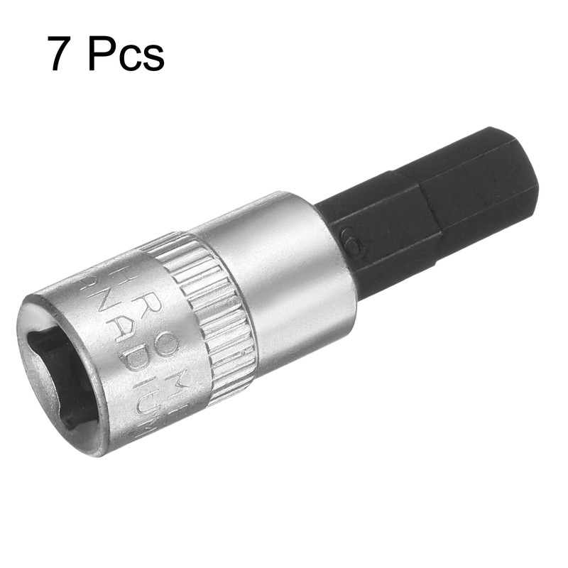 sourcing map 7pcs H6 Hex Bit Socket 1/4" Square Drive Metric Extension Impact Bit Power Nut Driver Set S2 & CR-V Steel Socket Ratchet Wrench Bits, Silver Black