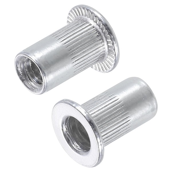 sourcing map #8-32 Rivet Nuts Aluminium Alloy Knurled Flat Head Threaded Insert Nut 40Pcs