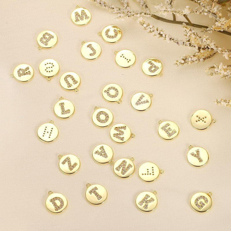 sourcing map 8 Pcs Letter Charm Bulk Initial Charm Round Alphabet Charm Pendant for Necklace Bracelet Earring Jewelry Making Diy, Gold-S